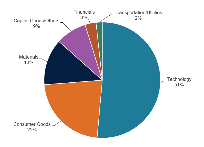 แผนภาพ 1: น้ำหนักอุตสาหกรรมในดัชนี Nikkei 225 Stock Average Index